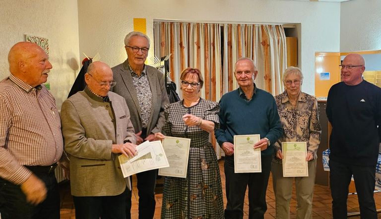 Zu den Hauptpunkten des Tages gehörte die Ehrung der 25jährigen Vereinstreue von Rosel Günthert und der 50-jährigen Vereinstreue von Gisela Schäfer, Manfred Konrad, Adolf Schmidt Karl-Heinz Hormel. Die Ehrungen wurden durch unseren Ersten Vorsitzenden Helmut Müller und Hilmar Diwisch als Vertreter für den überörtlichen Kreisverband Lahn-Dill zur Förderung des Obstbaues, der Garten- und Landschaftspflege. Renate Müller fehlte entschuldigt zu ihrer Ehrung. Hierbei haben die Geehrten sich herzlich bedankt und erzählt haben, warum sie in den Verein eingetreten sind. So konnten beispielsweise die Kartoffelpflanze vom Feldsalat unterschieden werden. Allen Geehrten nochmal einen Herzlichen Glückwunsch und ein DANKE für eure Treue.
